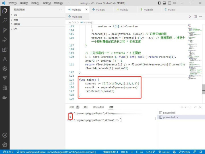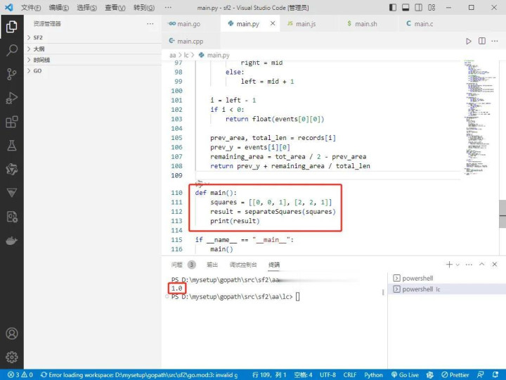 2025-08-21:分割正方形Ⅱ。用go语言,给你一个二维整数数组 squares,其中每个元素 [xi, yi, li] 表示一个与 x 轴平行的正方形:左下角坐标为 (xi, yi)实盘10倍杠杆,边长为 li。请寻找最小的实数 Y,使水平直线 y = Y 将所有正方形的并集划分成上下两部分,且上半部分的面积与下半部分的面积相等。正方形之间可能相互覆盖,重叠区域只计入一次。答案以绝对误差不超过 视为正确。